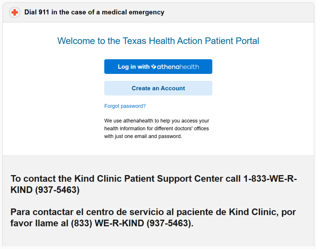 Kind Clinic compromete a proporcionar una atención sanitaria accesible y satisfactoria, lo que incluye garantizar que tus herramientas de salud en línea sean fáciles de usar y seguras. Como parte de nuestras continuas actualizaciones tecnológicas, hemos actualizado el enlace de inicio de sesión del Portal del Paciente para conectarte con nuestro nuevo portal de salud Athena.